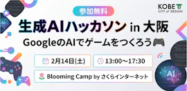 本イベントは、神戸市主催の学生向けデジタル人材育成プロジェクト「こうべデジタル活動部(デジ活)」の一環として開催する、初心者歓迎の生成AIハッカソンです。会場は、さくらインターネット本社の共創施設「Blooming Camp」(グラングリーン大阪 北館3F)。今回は「大阪AI文化万博」とのコラボ企画として、関西のAI好きが集まる場で“つくる体験”に挑戦します。